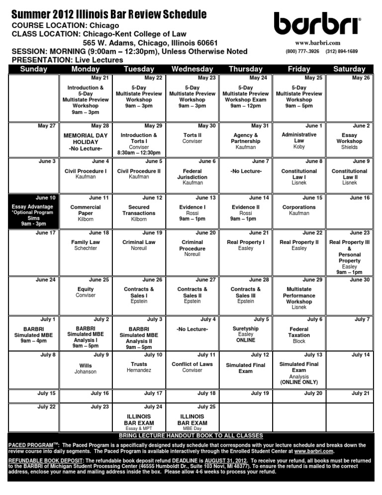 Barbri Summer 2022 Schedule