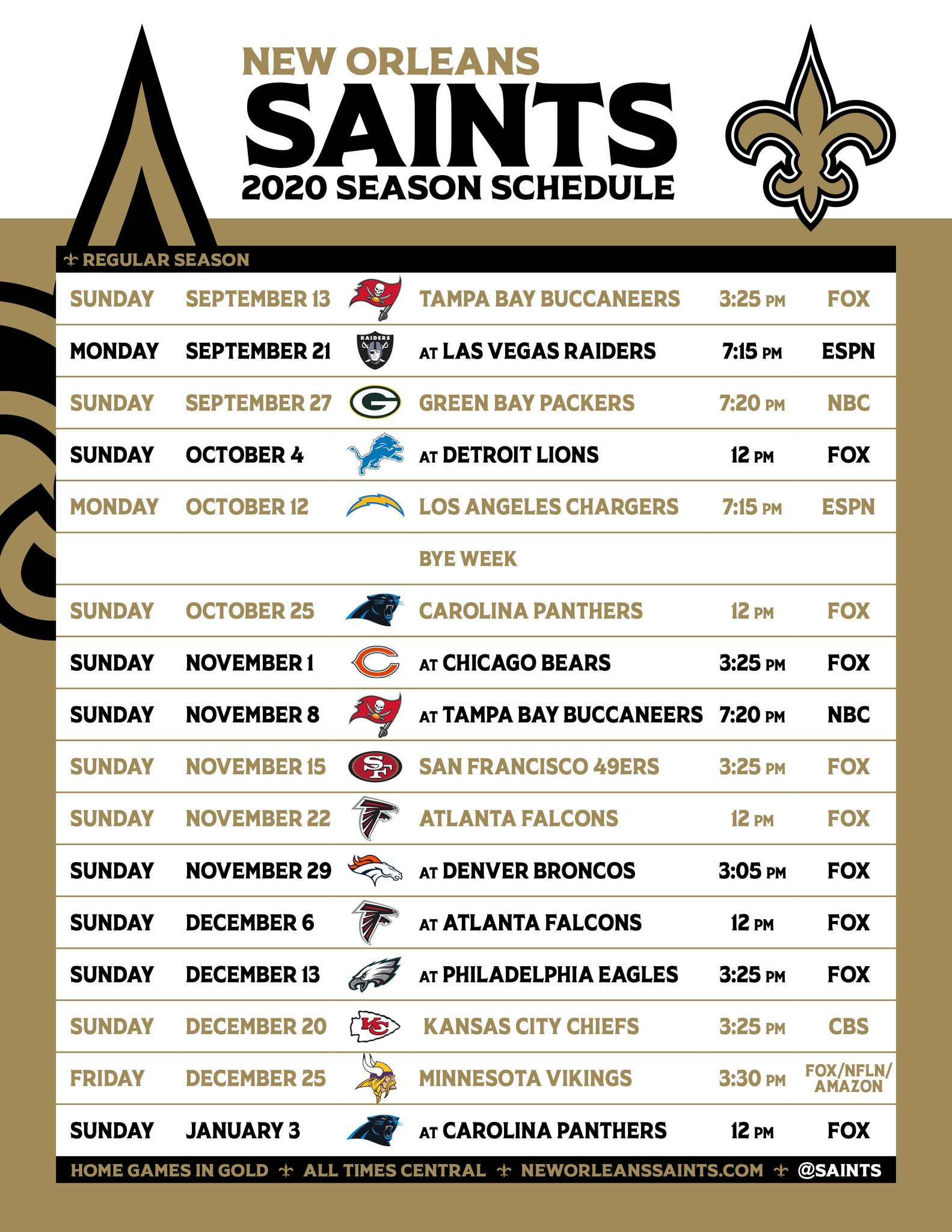 New Orleans Saints Schedule New Orleans Saints Schedule Saints Schedule New Orleans Saints