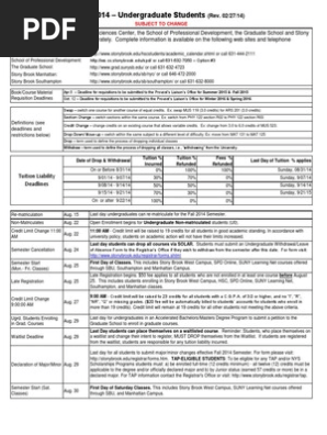 Calendar Fall 2014 Stony Brook Academic Term Graduate School